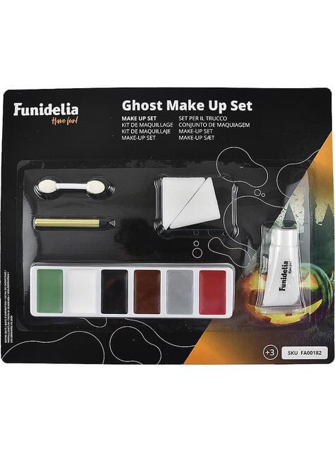 Το σετ μακιγιάζ φάντασμα είναι ακριβώς αυτό που χρειάζεστε για να επιτύχετε μια φέρετρο και γεμάτη μυστήριο εμφάνιση. Ιδανικό για να ολοκληρώσετε την στολή σας το Halloween ή για οποιαδήποτε θεματική εκδήλωση, αυτό το κιτ σας επιτρέπει να σχηματίσετε ένα χλωμό, σκοτεινό και τρομακτικά ρεαλιστικό πρόσωπο. Ιδανικό για εκείνους που απολαμβάνουν να φροντίζουν κάθε λεπτομέρεια της μεταμφίεσής τους.