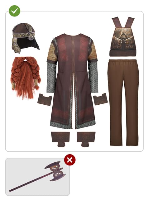Πρόκειται για προϊόν με επίσημη άδεια και Made by Funidelia, με το οποίο μπορείτε να περηφανευτείτε για την εξαιρετική ποιότητα και την εκτέλεση αντάξια ενός αυθεντικού νάνου πολεμιστή. Αυτό το κοστούμι έχει σχεδιαστεί για όσους αναζητούν στυλ και ποιότητα. Φορέστε το κράνος σας, σηκώστε το τσεκούρι σας και δείξτε ότι κανένας ορκ δεν μπορεί να σας νικήσει σε αυτή την περιπέτεια στη Μέση Γη.